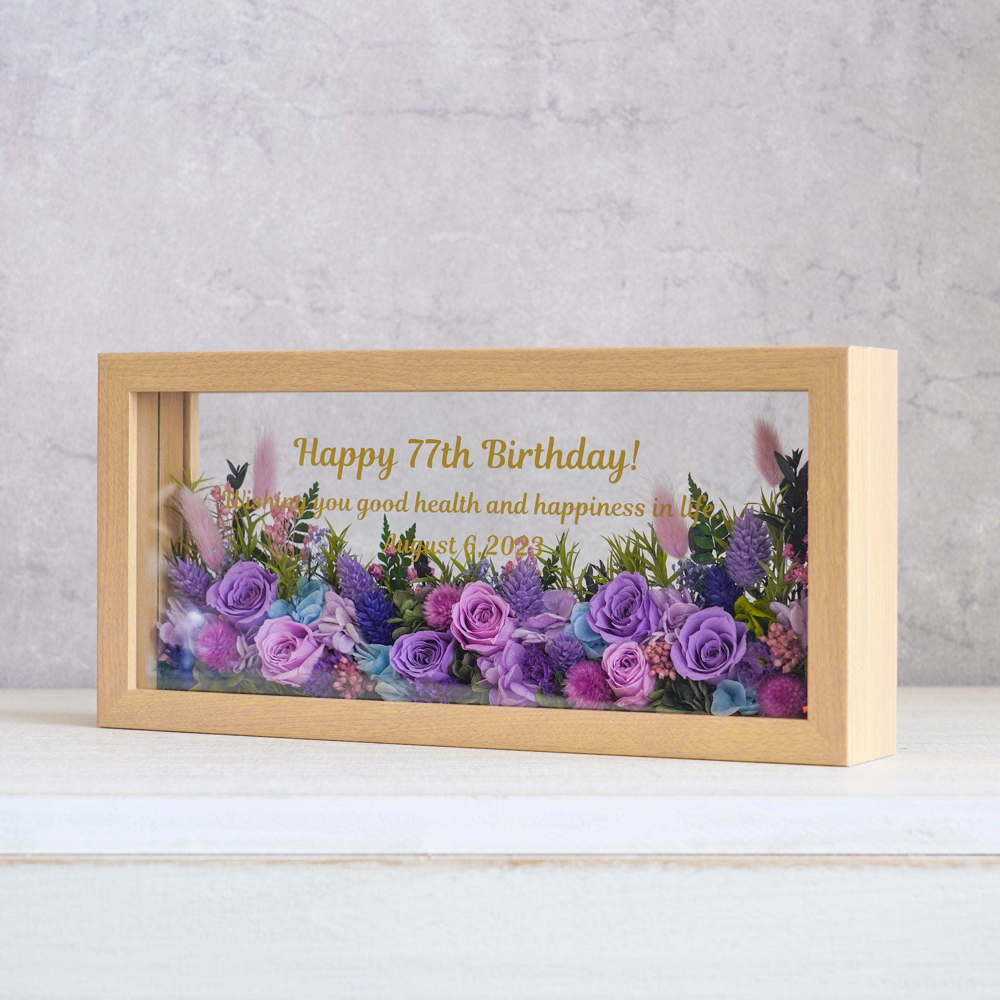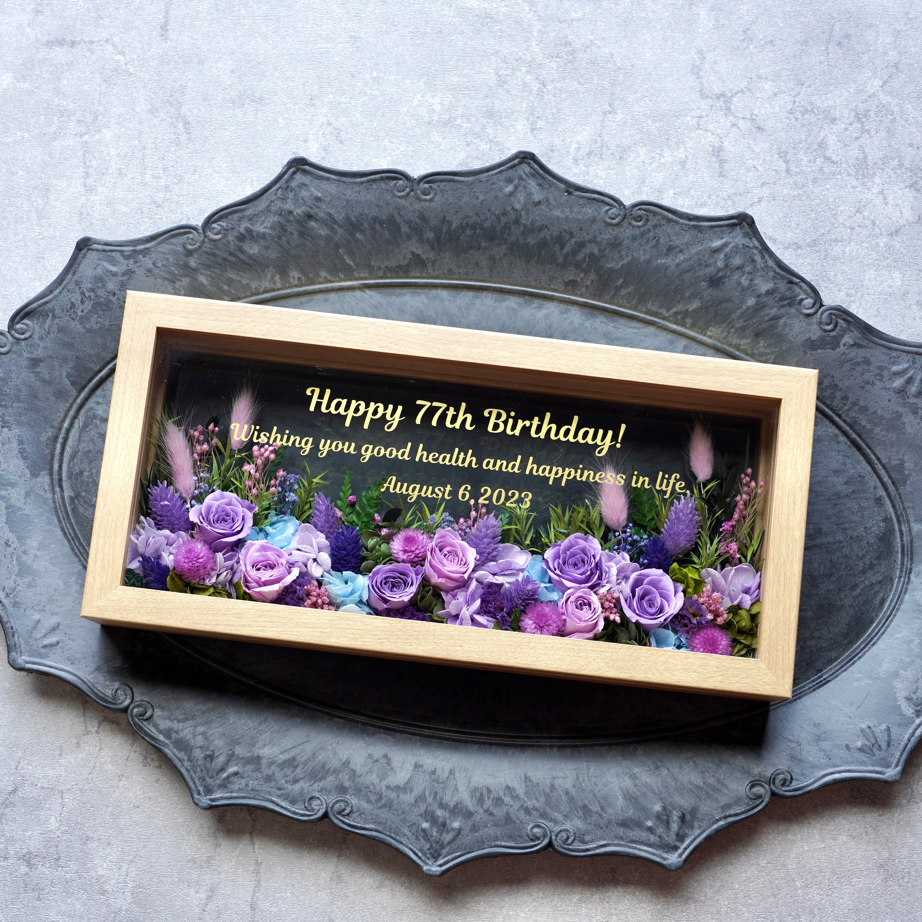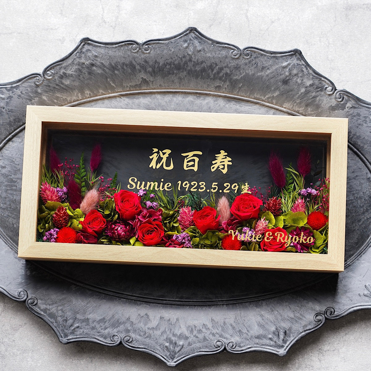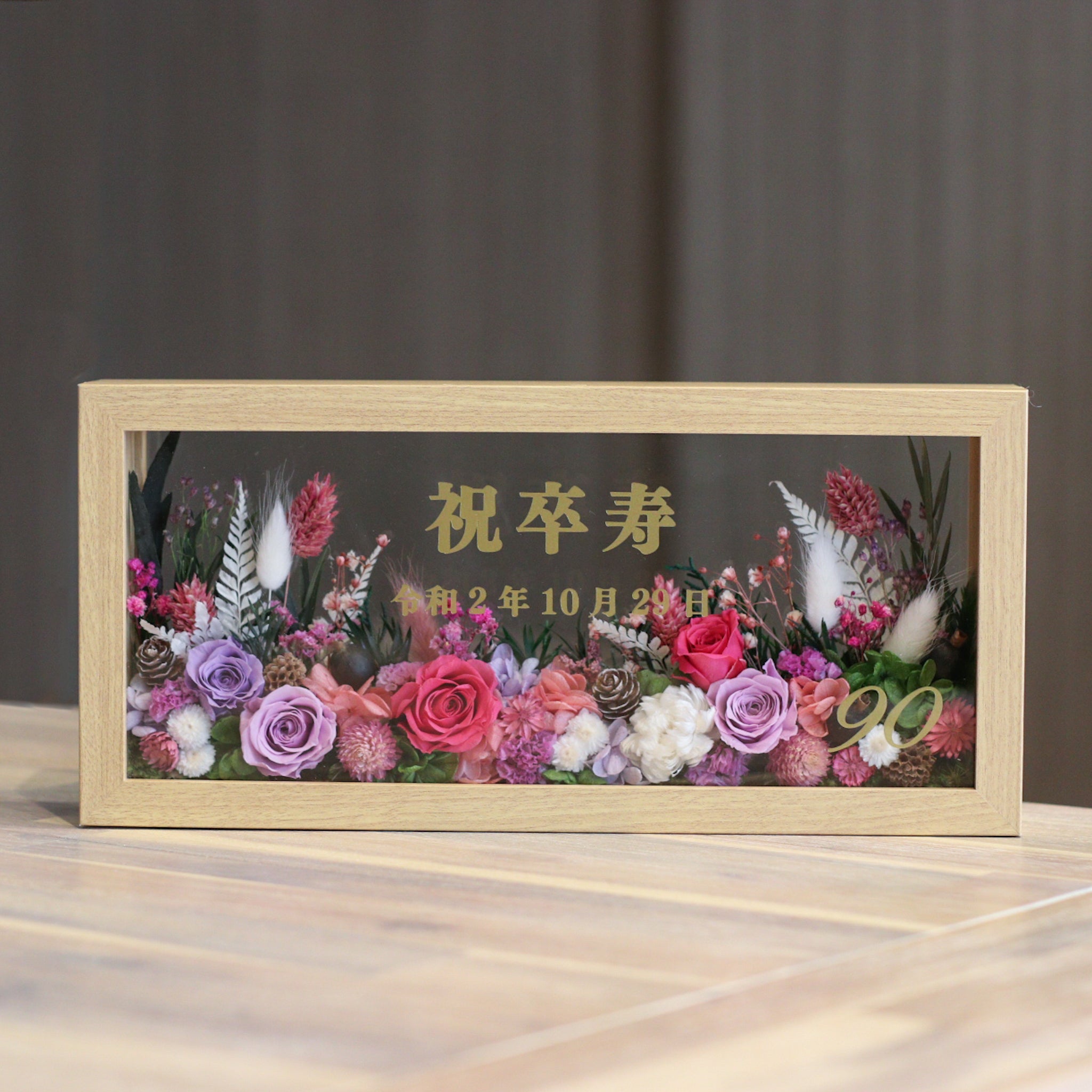 フレームのガラスにご希望のメッセージを入れることができるので、お誕生日や記念日、結婚式の贈り物に大人気です。